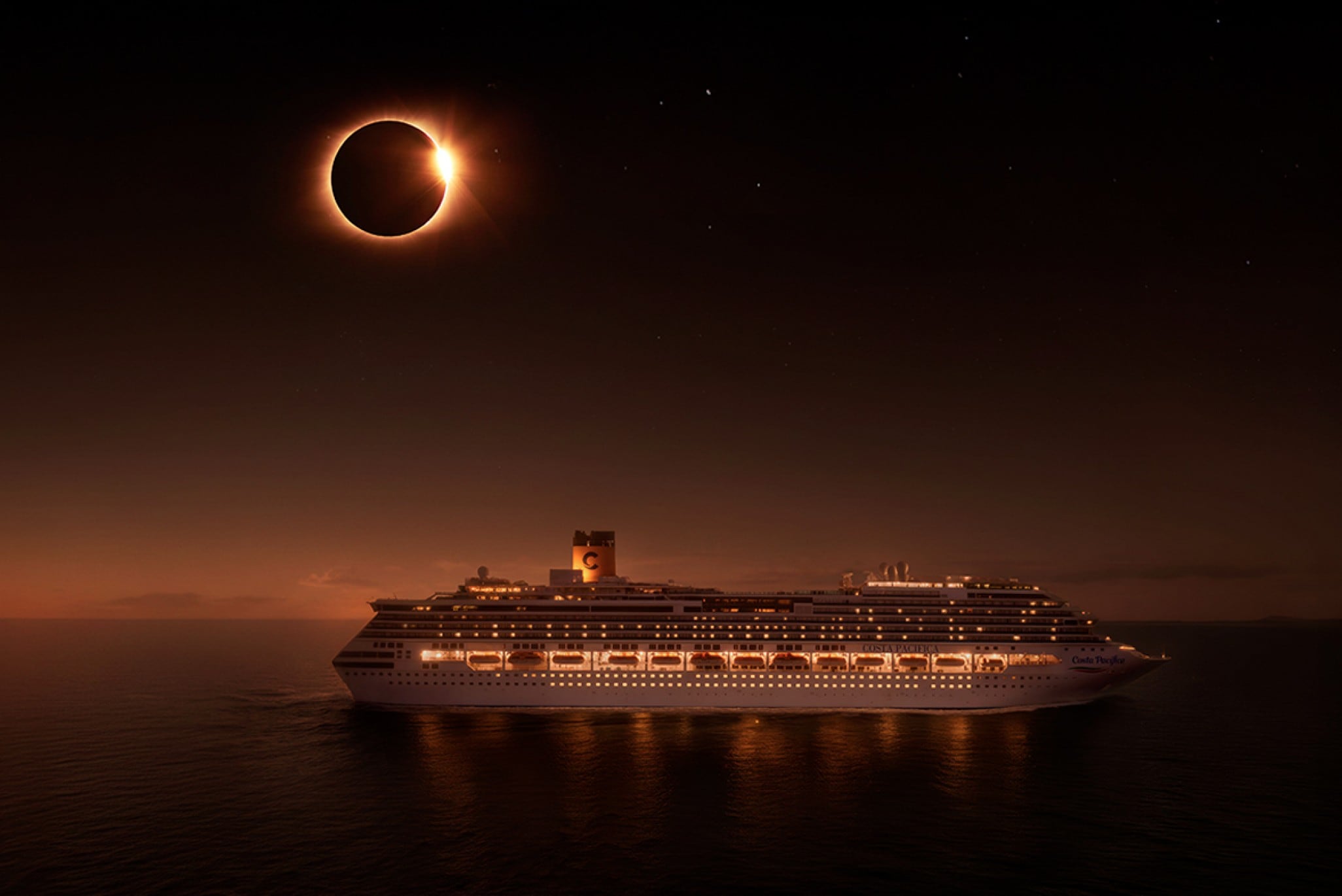 E Costa ti porta nel punto esatto nel mare delle Baleari dove il sole si oscurerà completamente.